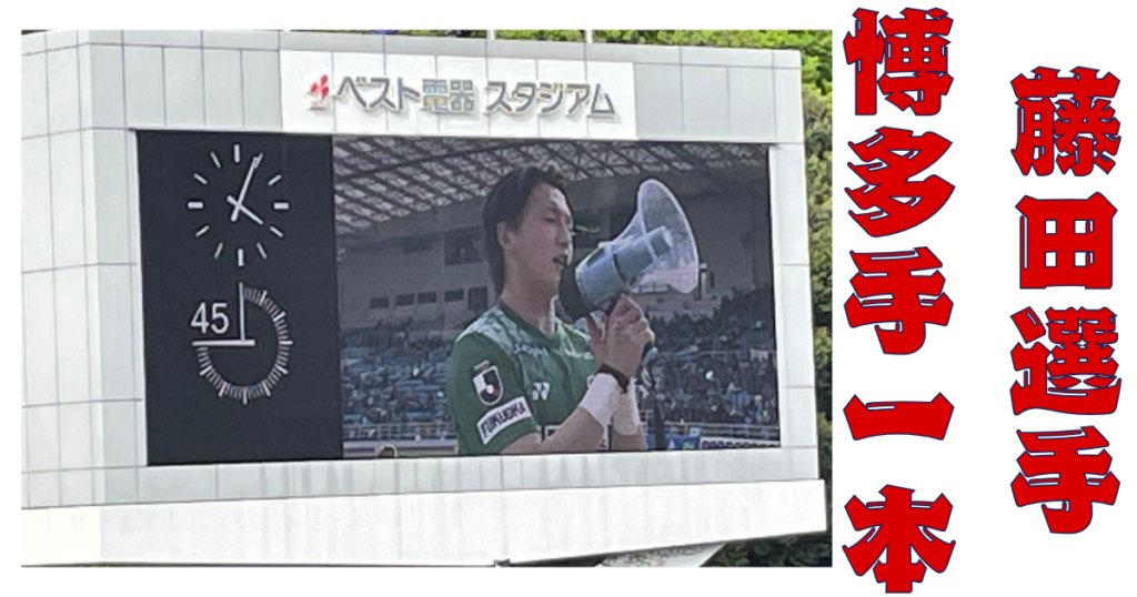 今年、アルビレックス新潟から移籍してきた藤田選手。試合後の選手インタビューでは、かわいく手を振ったりする場面も見られました。長崎戦の勝利後のゴール裏で、博多手一本を見木選手から促され少し戸惑ったのかもしれませんがしっかりと声を出すことができていました。