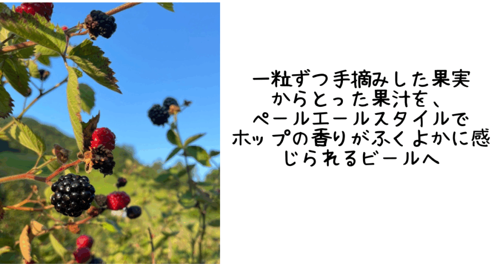ブラックベリーは栽培に手間がかかり、収穫も丁寧さが必要です。その実を惜しみなく使い、香りを逃さないように工夫しながら作るこのビールは、まさに”ここにしかない特別な味”なんです。