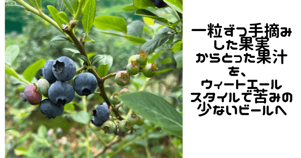 このビールは、畑で完熟した実を丁寧に手摘みした果汁をそのまま仕込む製法。ブルーベリーの風味をなるべく活かす方法を工夫しながら作られています。