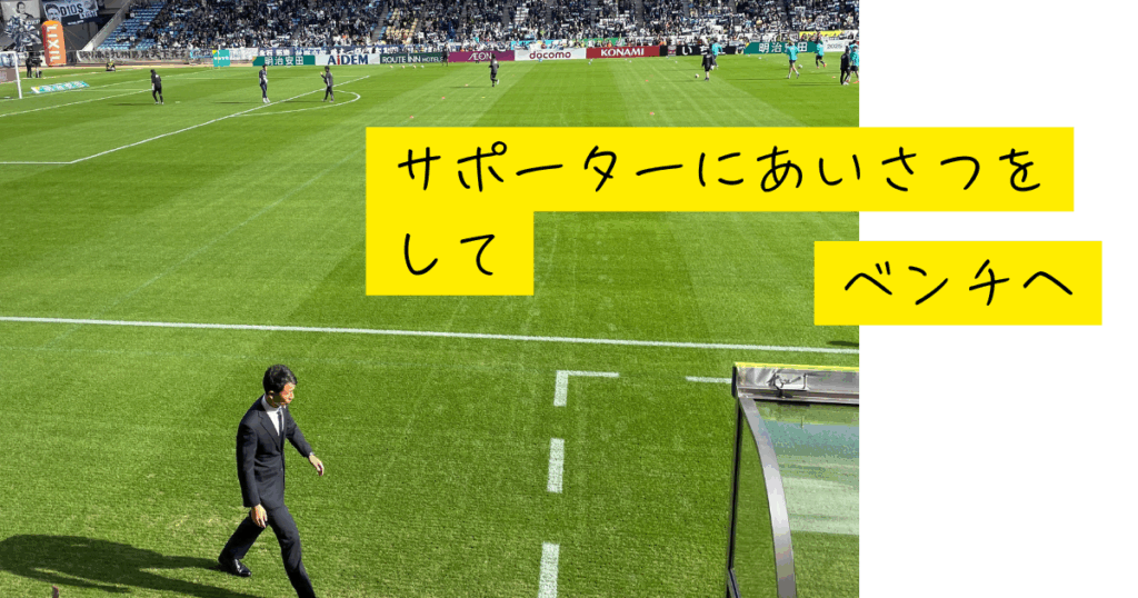 ホーム最終戦ということで、選手のウォーミングアップ時に監督も一緒にグラウンドに登場しました。最終戦を勝ちで締めくくるという強い思いを、引き締まった表情からも見て取ることができました。